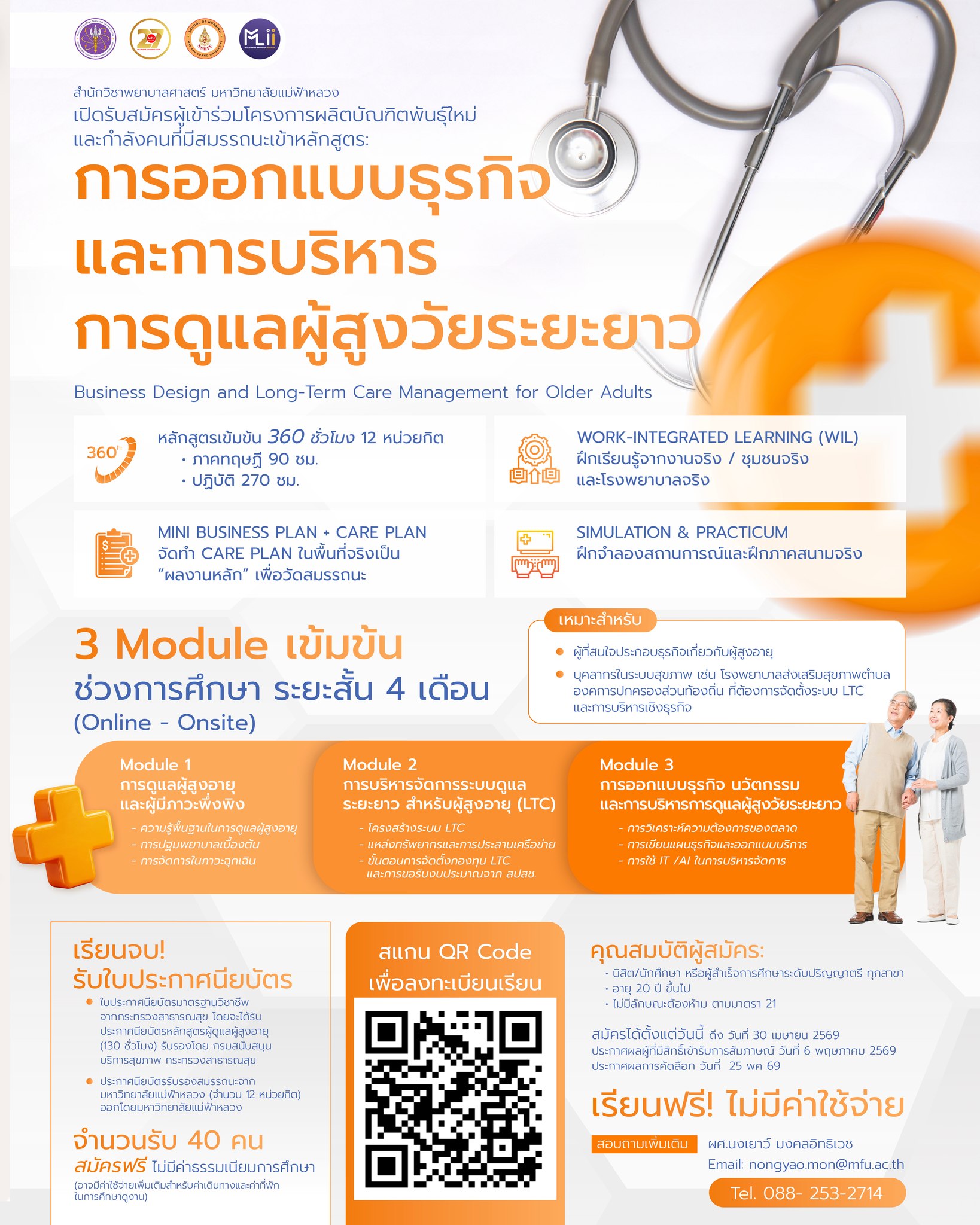 • ประกาศนียบัตรผู้ดูแลผู้สูงอายุ (130 ชม.) จาก กระทรวงสาธารณสุข