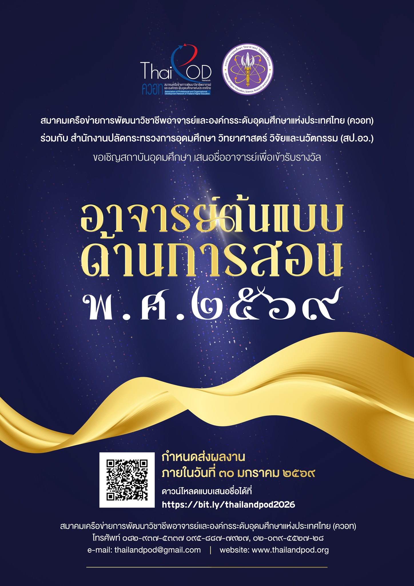 ขอเชิญเสนอชื่อ “อาจารย์ต้นแบบ ด้านการสอน พ.ศ. ๒๕๖๙”